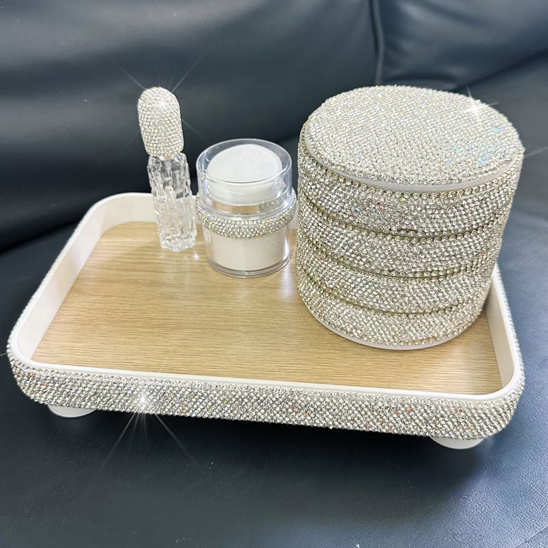 収納トレイ、高級感のあるラック、高級ダイヤモンドがちりばめられた大容量のスキンケア製品収納ボックス、ネットセレブの軽い高級装飾トレイ