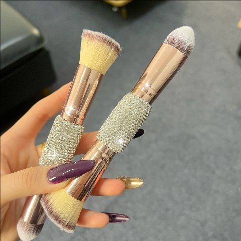 ダイヤモンドブラシ職人のダブルヘッドのアイシャドーのハイライトブラシの携帯用セットのダブルヘッドの化粧ブラシの柔らかい動物の毛が多いです。