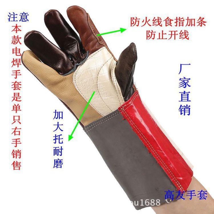 牛革防火線プラス条電気溶接手袋家具七色皮溶接工防護労働保護手袋短皮溶接短金