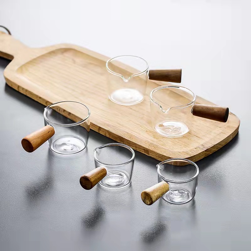 ミニ耐高温ガラス小乳鍋木柄小乳杯ミニコーヒーミルクカップカフェ用品小ミルクタンク