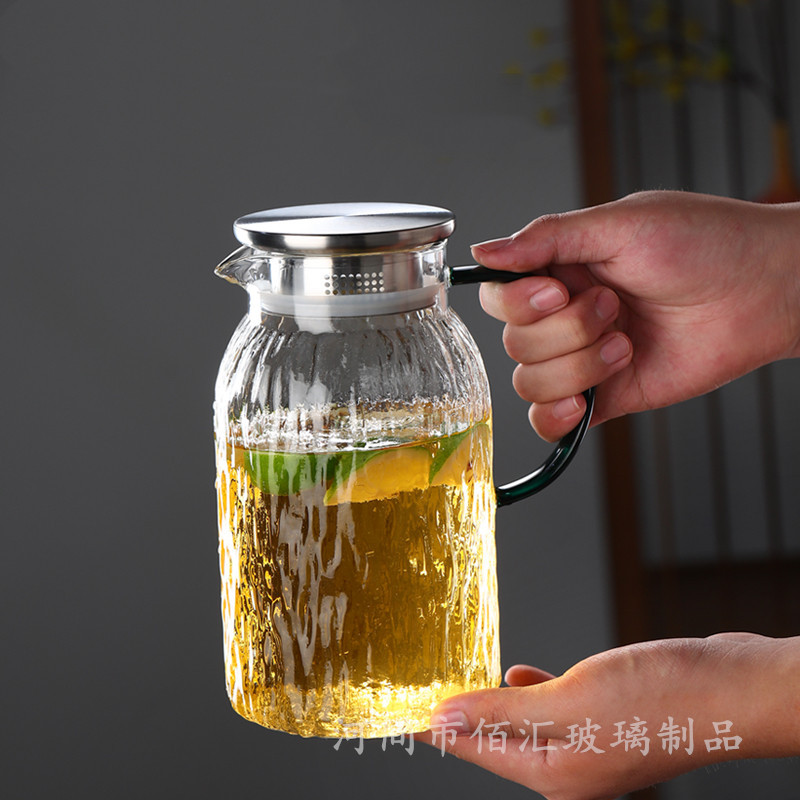 新しい木の紋様の冷たい水筒は厚い耐熱ガラスの冷たい水筒の大容量の冷たいティーポットの冷たい白は水筒のジュースの壺を開けます。