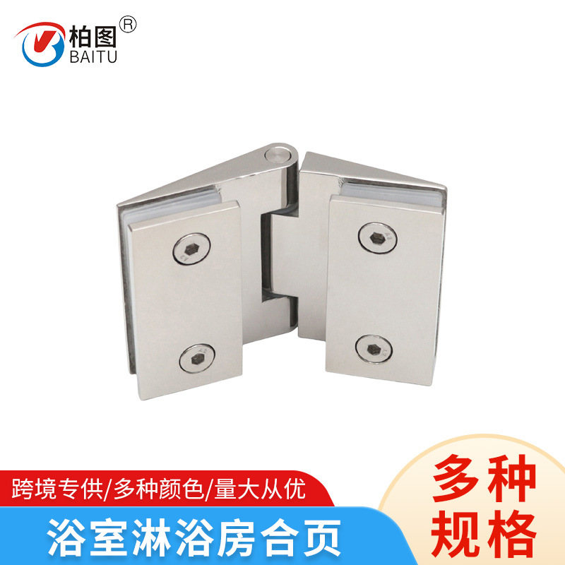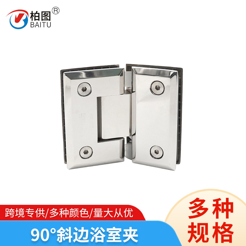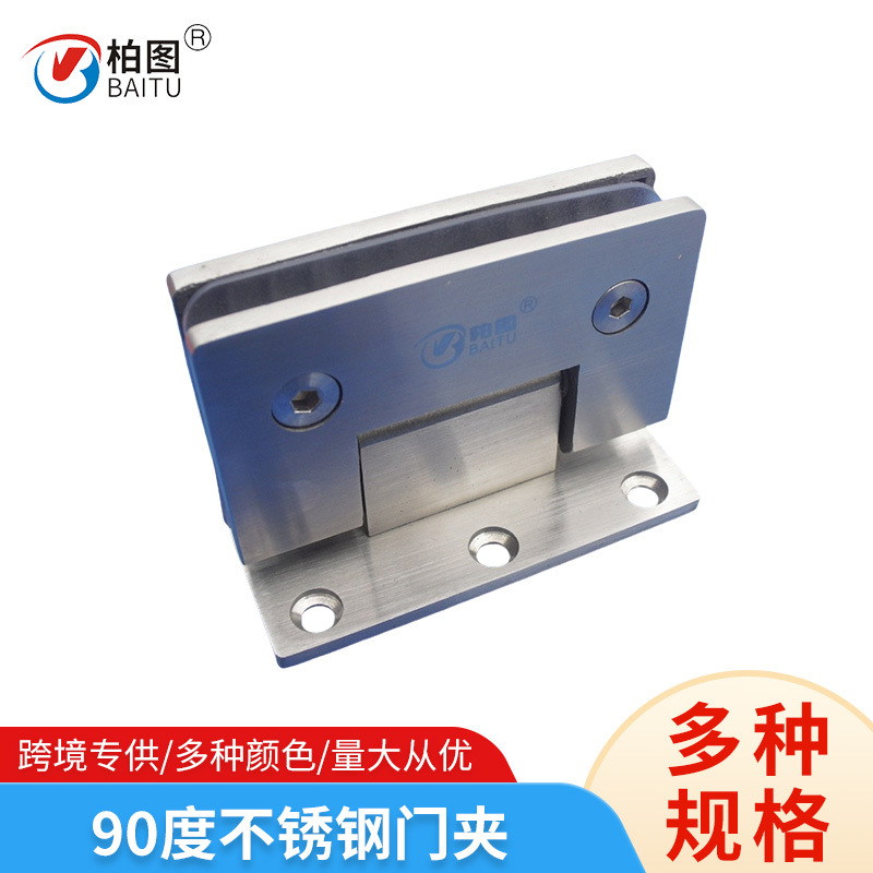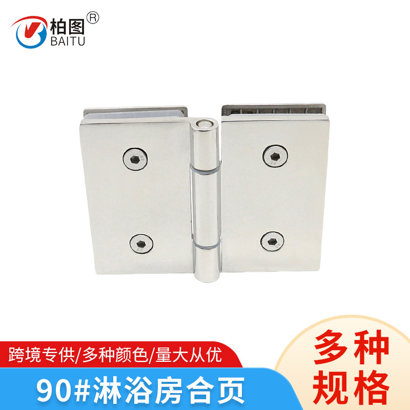 柏図風呂直供全精鋳ステンレス90度ダブルページ浴室ドアクリップシャワー室ガラスドアヒンジ
