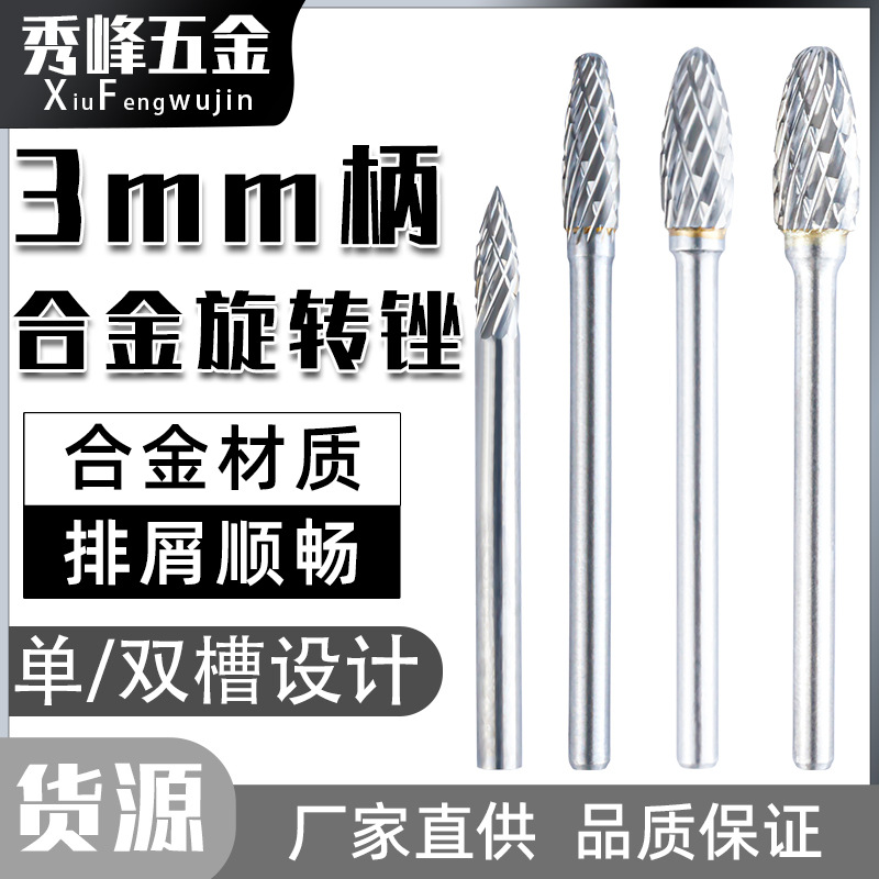 3ハンドルシングルおよびダブルスロットH型タングステン鋼研削ヘッド、トーチヘッド、フライス、金属研削および彫刻合金ロータリーファイル