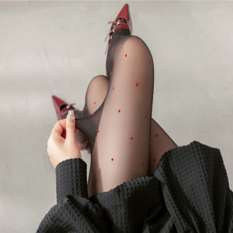 レトロな赤いポイントのストッキングiuは底の靴下JKの黒い糸の女性の春秋の安可が靴下の薄い金を引っ張ることができます。