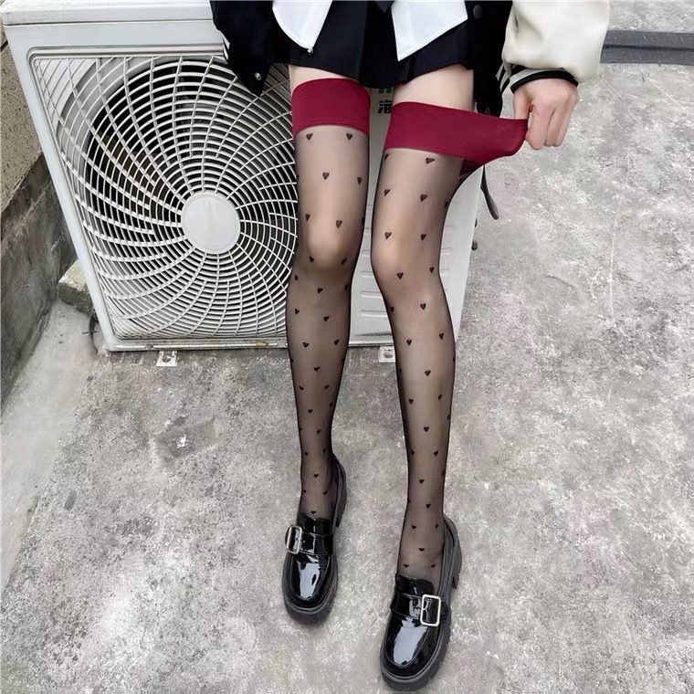 黒の薄いセクシーなストッキングの赤い辺の黒い糸の長い筒の波の点の愛は膝の靴下のサブネットの赤いお姉さんの風の高い靴下を通します。