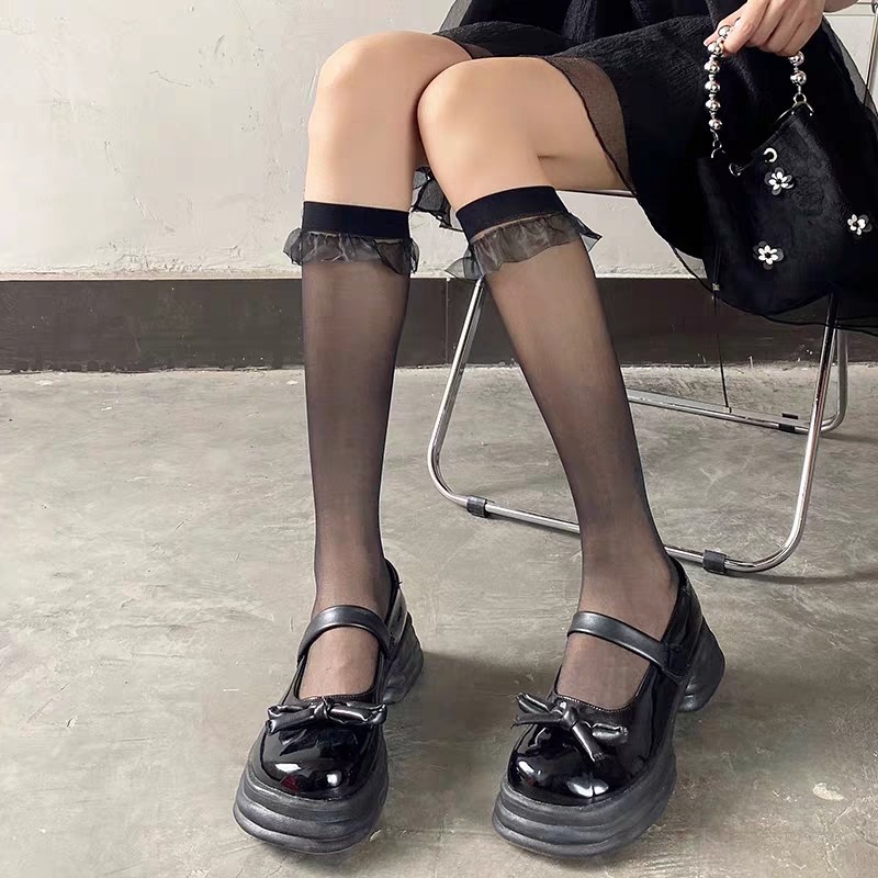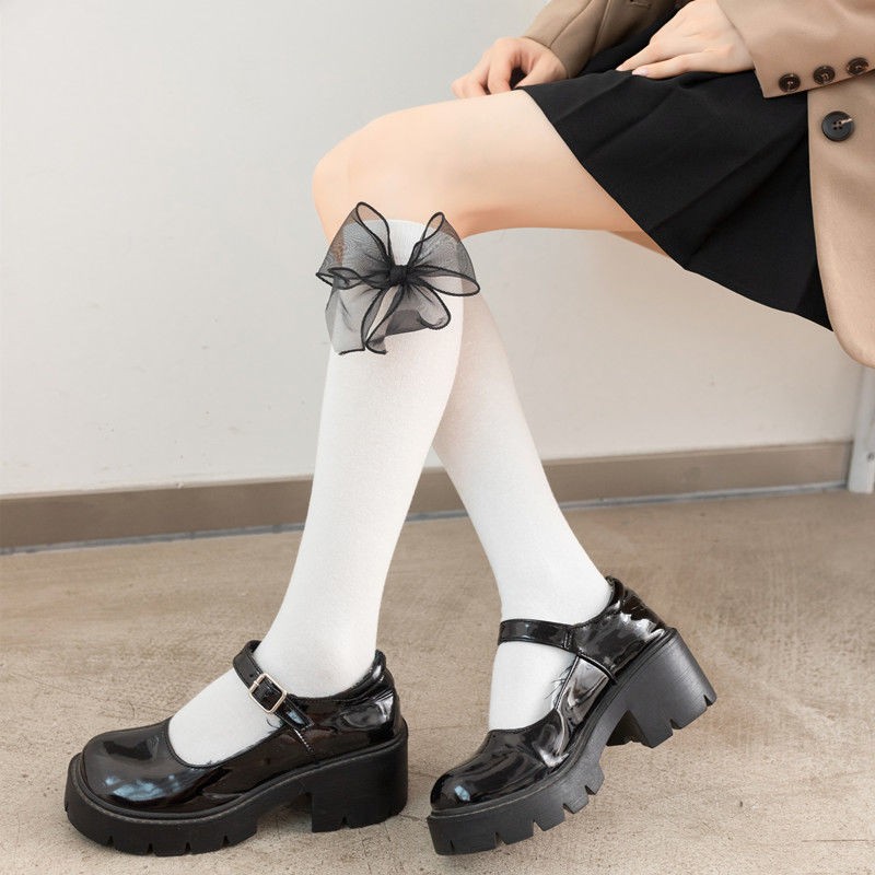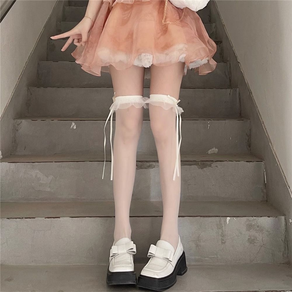 春夏バレエ風少女微透ふくらはぎソックス薄手甘美純欲リボン蝶結び可愛い中筒スタッキングソックス