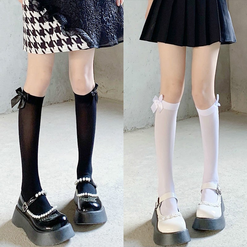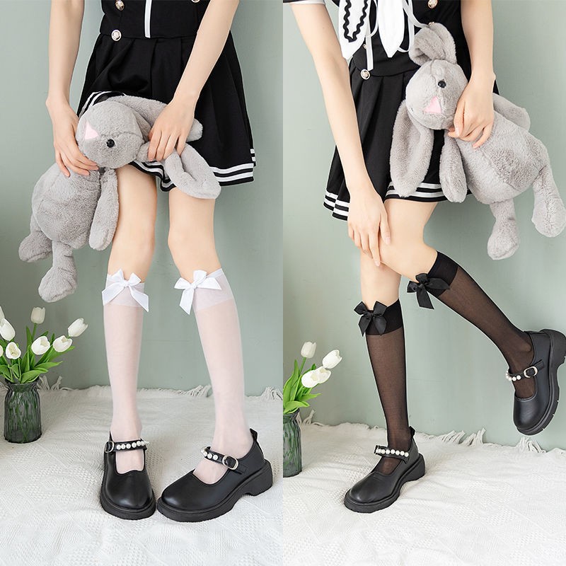Jk蝶結びのふくらはぎの靴下の薄い夏のストッキングはやせています。