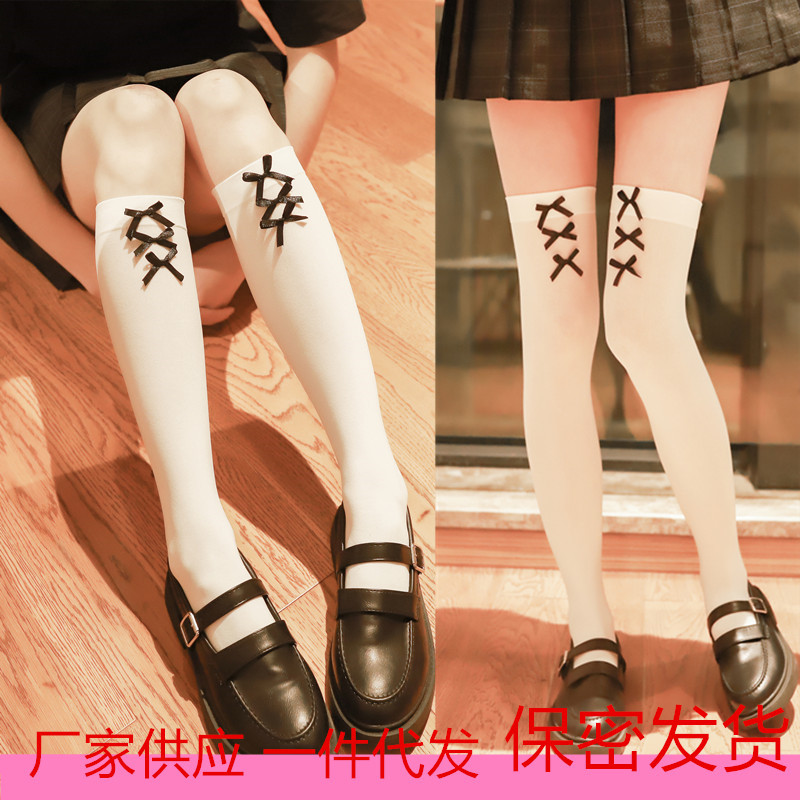 暗い黒の日本語のストッキングの女性の薄いタイプの黒い膝の靴下のストッキングのかわいい日本のjkのセクシーなinsの潮のアルファベット