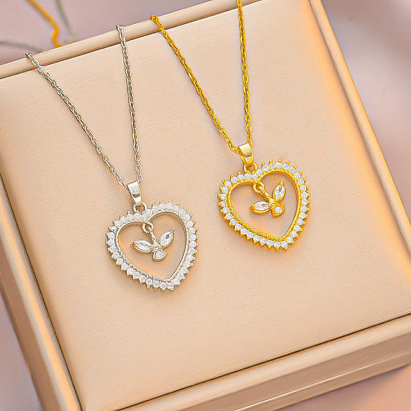 国境を越えたソース欧米の対外貿易がよく売れているジルコン愛チタン鋼のネックレスはファッションが簡単で、鎖骨鎖に合っている
