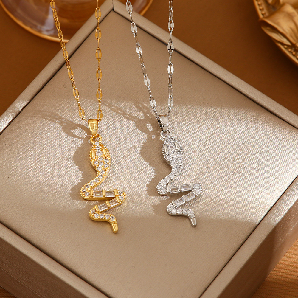 欧米のドリルいっぱいのジルコンの小さい蛇のネックレスの個性のファッションの鎖の骨の鎖の女性のネットの赤い同項の流行のINSチタンのチェーン