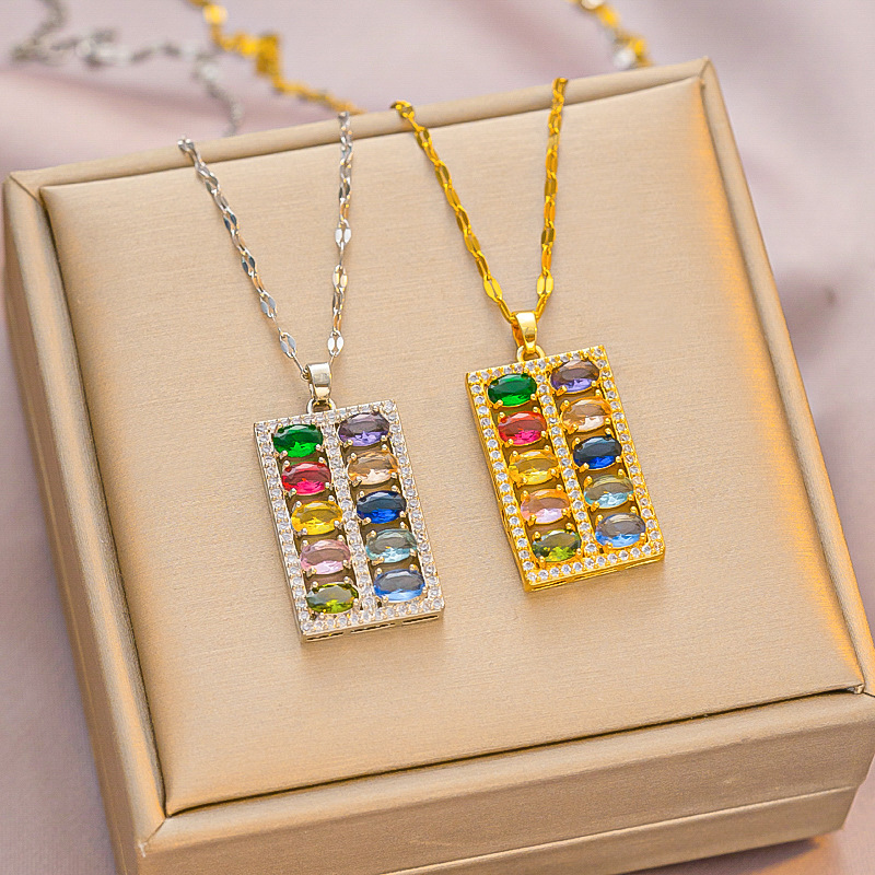 震え音の爆発の韓国版のファッションの経典の透かし彫りの方行のジルコンのチタン鋼のネックレスの軽くて豪華な風のペンダントの鎖のチェーンの卸売り