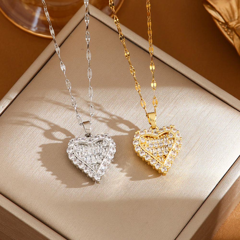 ディザトーン爆金欧米国境を越えたチタン鋼のネックレスにジルコンを入れるファッション的な愛のペンダント鎖鎖ジュエリーメーカー直販