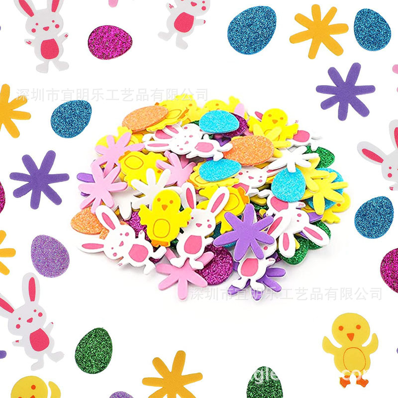 亚马逊跨境复活节装饰EVA泡沫贴纸泡棉FOAM彩蛋兔子小鸡DIY套装