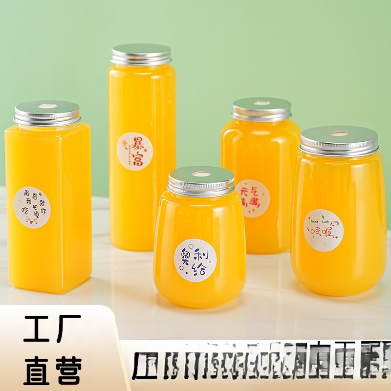 絞りたてオレンジジュースカップ使い捨てジュースドリンクカップ空ボトル透明商業蓋付き屋台包装カップポータブル