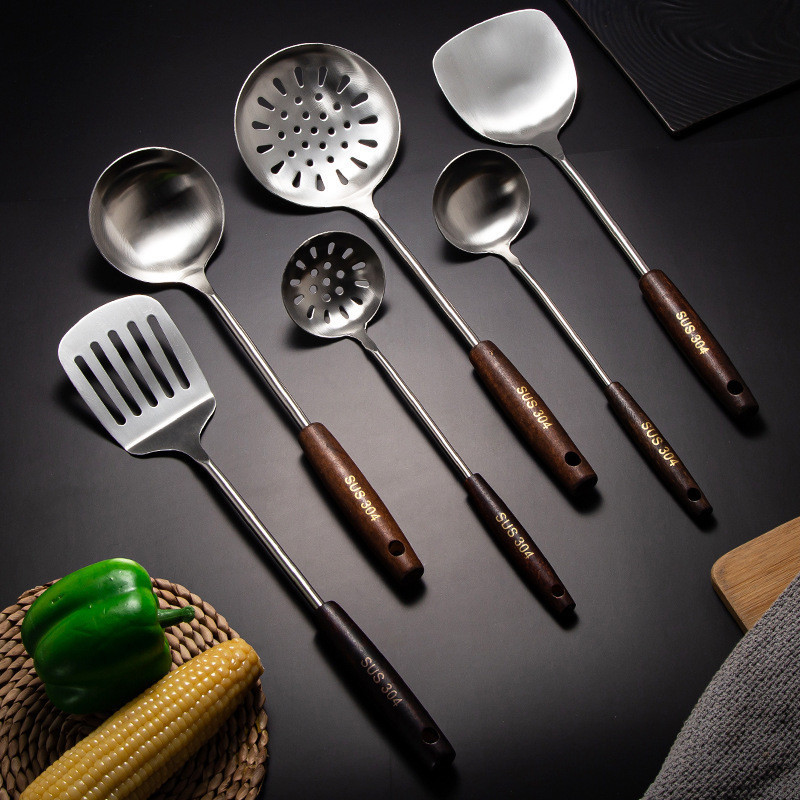ステンレス製スパチュラ キッチン用品セット 木製ハンドル スープスプーン ザル クッキングスパチュラ クッキングスパチュラ キッチン用品