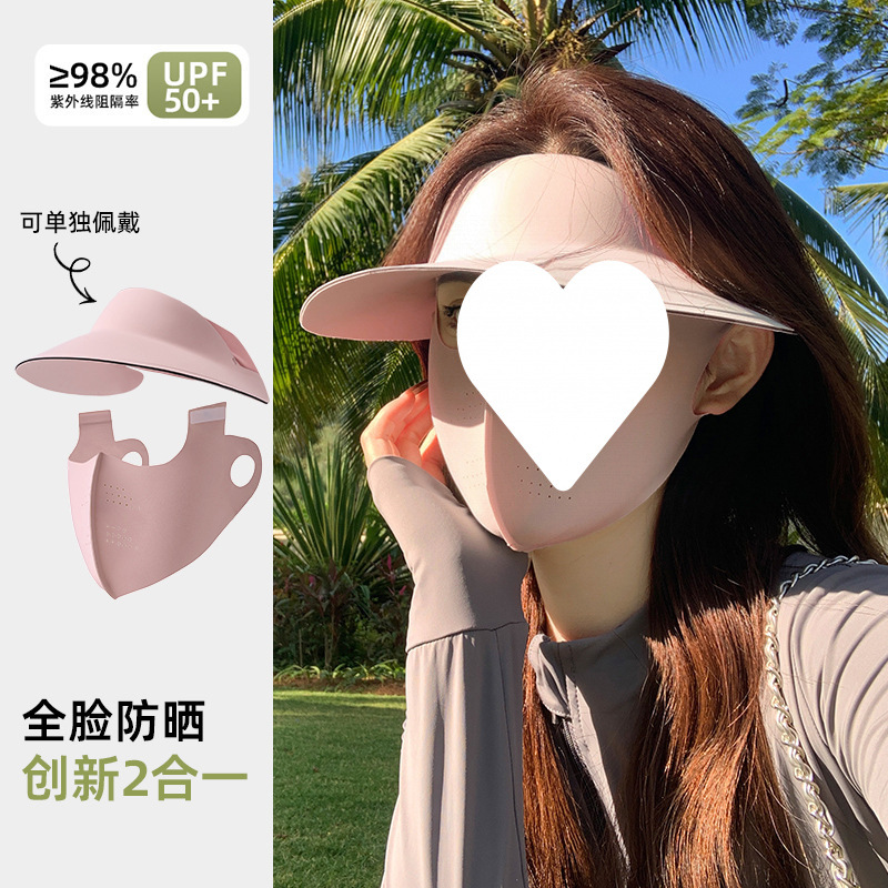 女性用夏用空のトップサンハット、フルフェイスUV保護サンハット、マスク、オールインワン、シームレス、ツーインワンアウトドア
