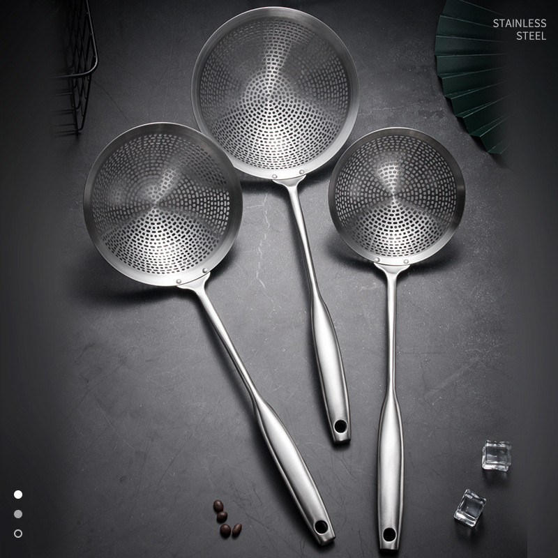 ステンレス製の大きなザル、厚手の鍋用ザル、穴あきザル、麺揚げ用ザル、揚げ物用フィルター