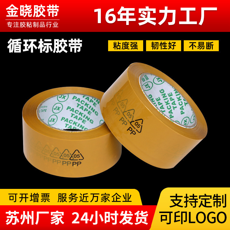 三角pp循環標米黄底黒色印刷テープは現物を持って特定蘇州常州無錫揚州を支持する