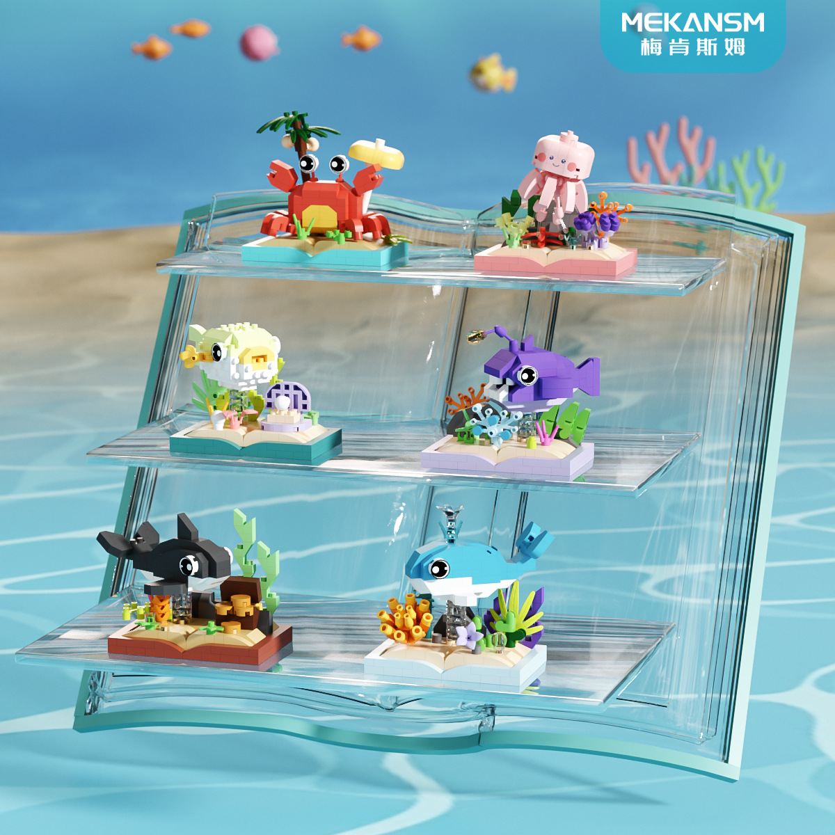レゴマイクロ粒子組み立てビルディングブロック、オーシャンブックレット、アンダーウォーターワールド、シロナガスクジラ、フグ、子供用知育玩具ギフトと互換性があります。