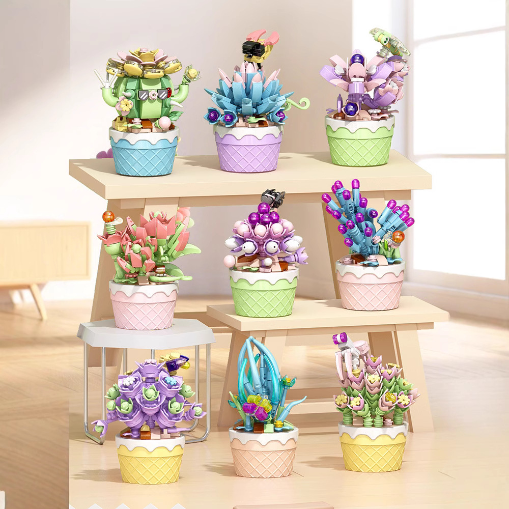 多肉植物鉢植えビルディングブロック花子供の教育組み立てモデルデスク装飾おもちゃ男の子と女の子のギフト