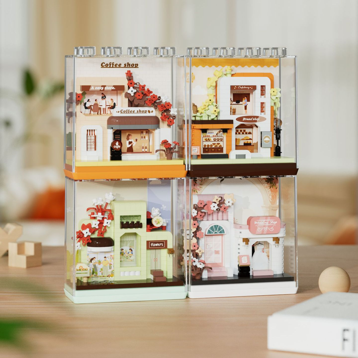 潮楽創喫茶店の積み木模型の益智はおもちゃの花屋のデスクトップを飾って彼女のバレンタインデーのプレゼントを送ります。