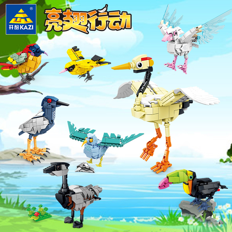 Kaiji ビルディングブロック子供の教育パズル組み立て動物モデルおもちゃ男の子組み立てサンバードカモメパズルギフト