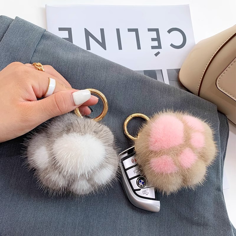 ミンクの毛の小さい猫の爪のぬいぐるみのペンダントのカバンの装飾のかわいい小さい爪の車のキーは誕生日のプレゼントを掛けます。
