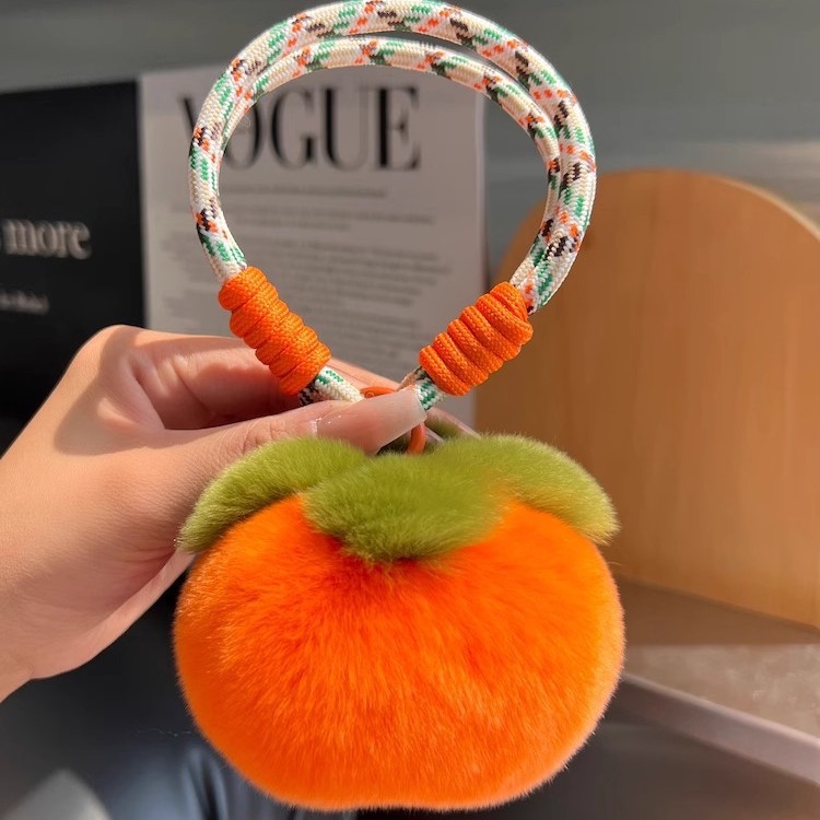 [かわいい小さな柿] 模造レッキスウサギの毛皮の車のキーホルダーペンダントハイエンドぬいぐるみボールスクールバッグペンダントギフト