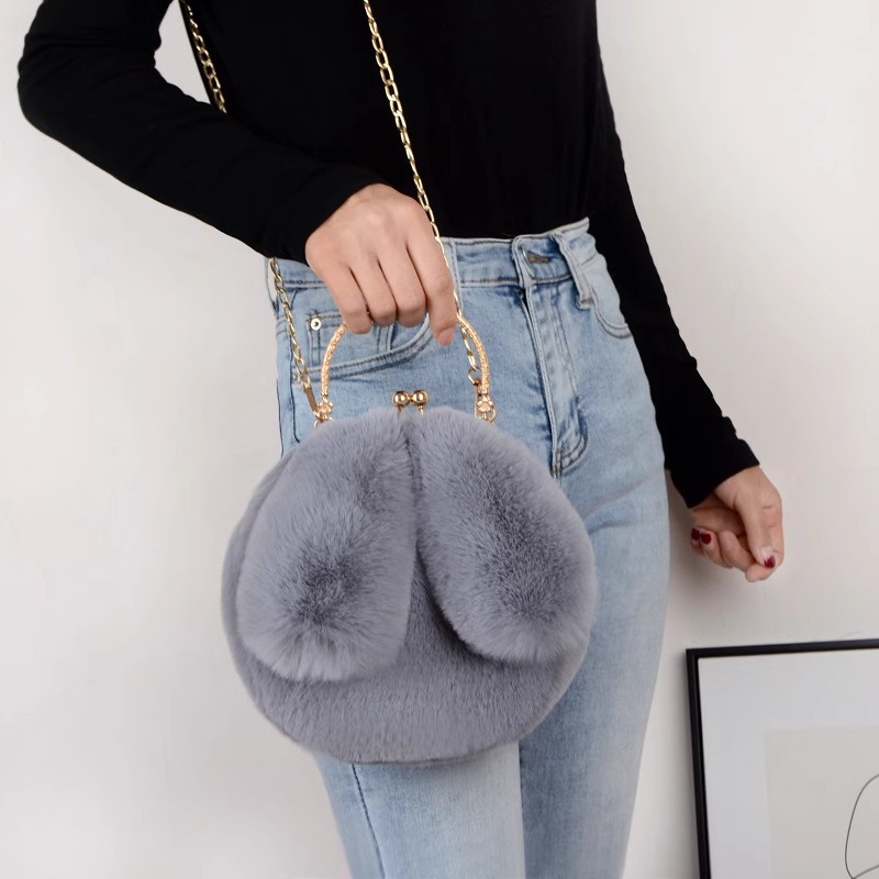 元のメーカーの卸売りウサギの耳のカバンは片手の肩の斜めのショルダーのクリップのカバンを持って秋の冬のチェーンのカバンを包みます。
