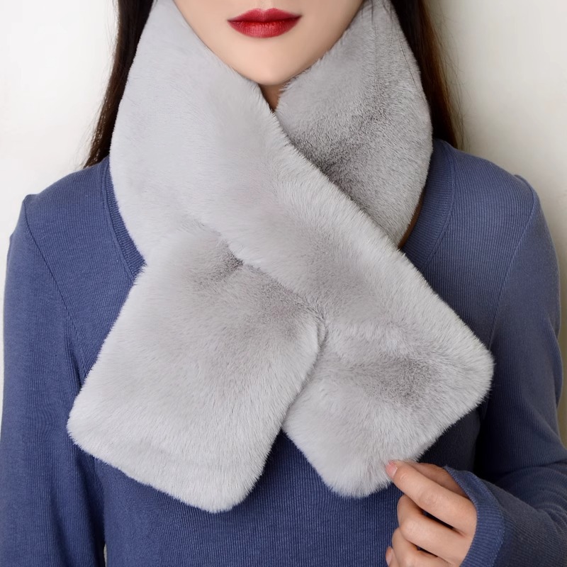 韓国の秋の冬は、ウサギの毛をまねて首を囲む両面のぬいぐるみを厚くして、暖かい女性学生のマフラーの襟を合わせます。