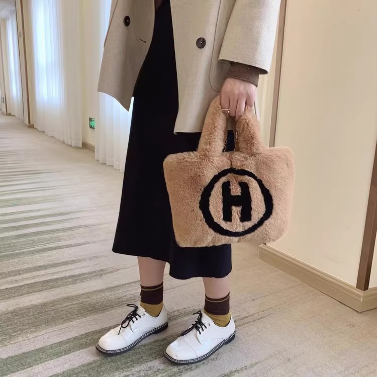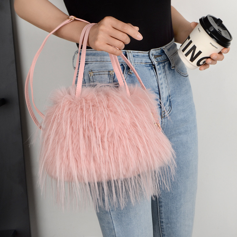 2024新型韓国版秋冬は、ウサギの毛皮のバッグをまねるかわいい毛のチェーンバッグの女性