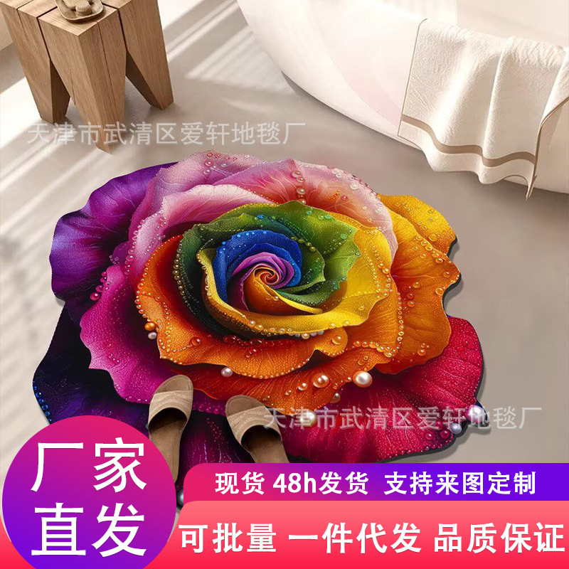 クロスボーダーフラワーバスルームフロアマット、小型、新鮮、吸水性、汚れ防止、お手入れ簡単、滑り止めフットマット、家庭用バスルームドアマット