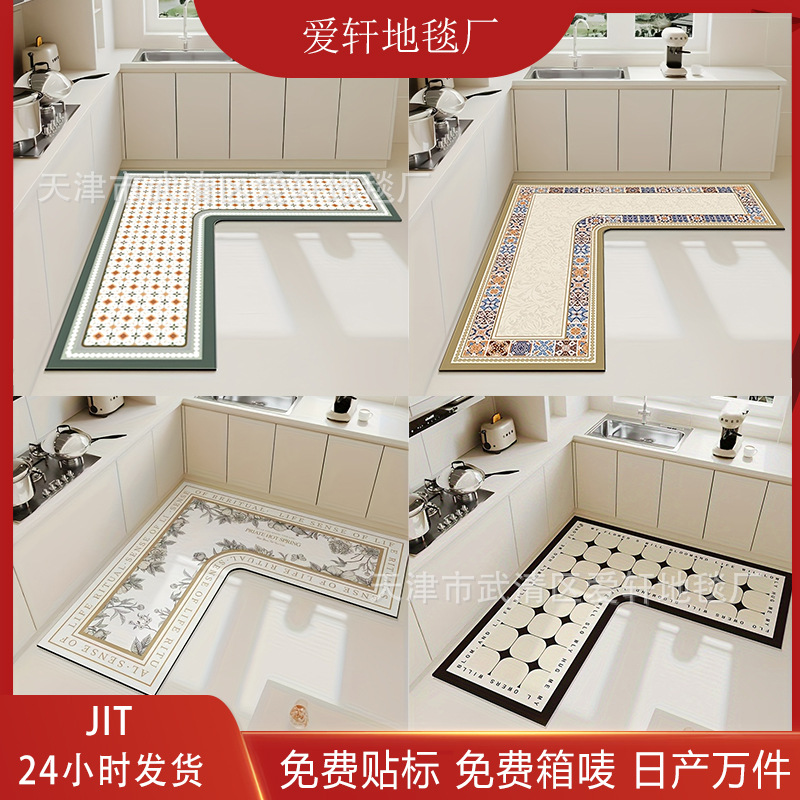 クロスボーダーキッチンフロアマット、吸水性、吸油性、速乾性、珪藻泥滑り止めマット、汚れにくくお手入れが簡単な家庭用L字型フットマット