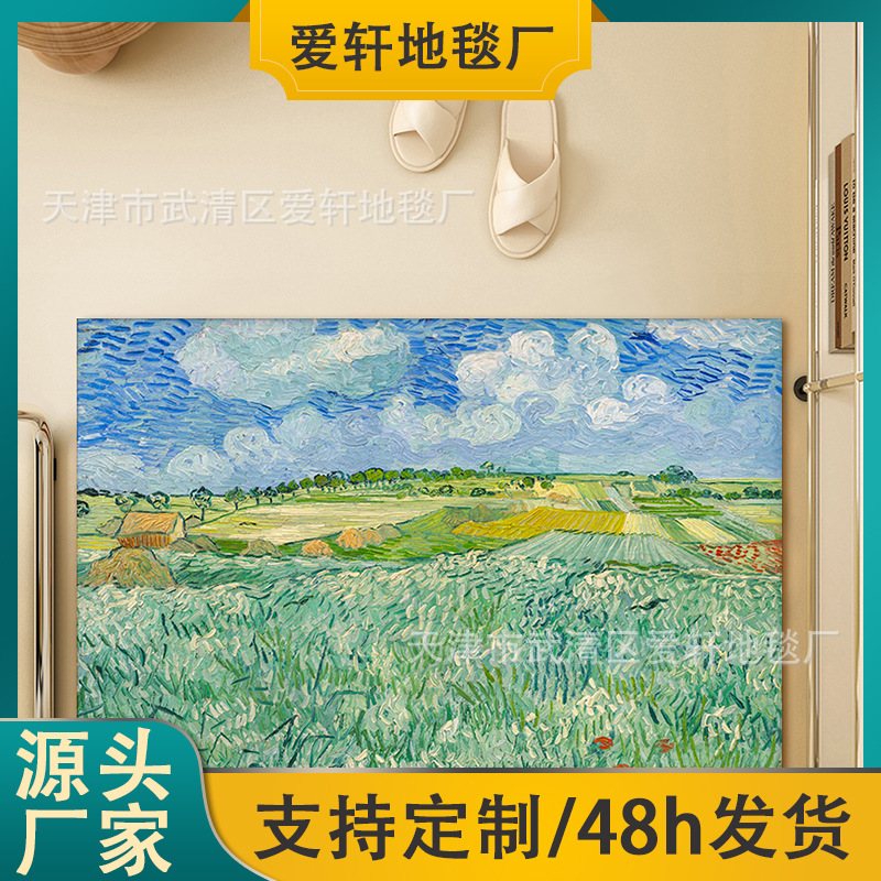 小さな新鮮な玄関ドアフロアマット、汚れにくくお手入れが簡単、滑り止めマット、バスルームフロアマット、家庭用ライト高級風景画フットマット