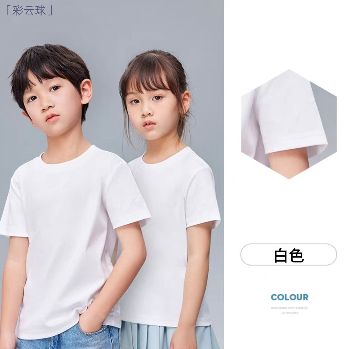 純綿子供tシャツ図案diy班服半袖印字ゆるい純色重ポンド作業服印刷ロゴ