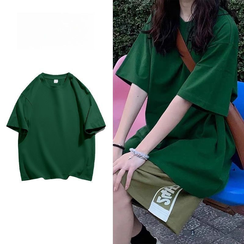 呼吸できる生地! 重ポンド精櫛純綿tシャツ女性の森の緑は白くてゆったりしています。