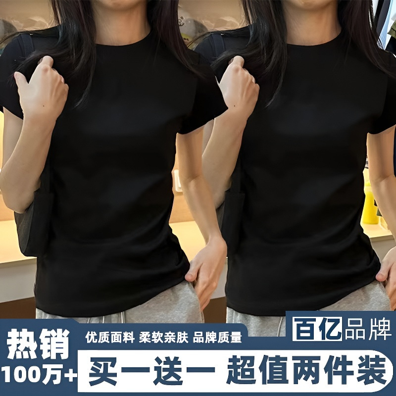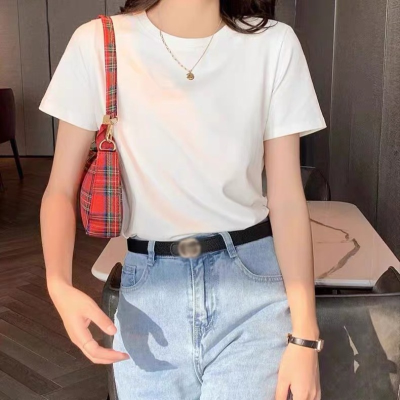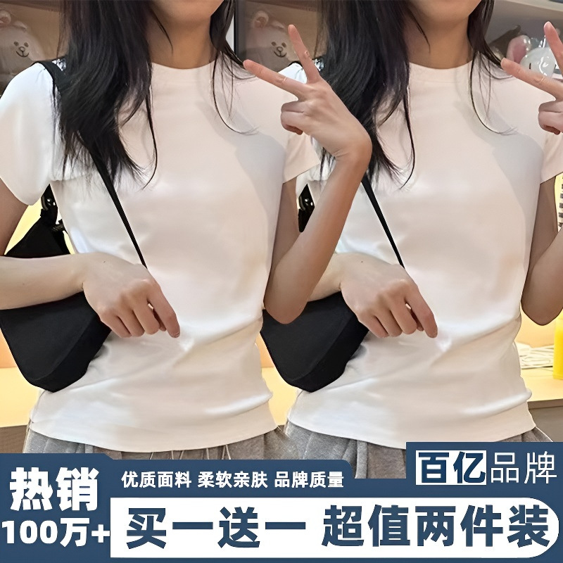ツーピース新疆純綿夏香港スタイルレトロ半袖Tシャツレディーススリムフィット多用途ガーリースタイルハイストリートトップ