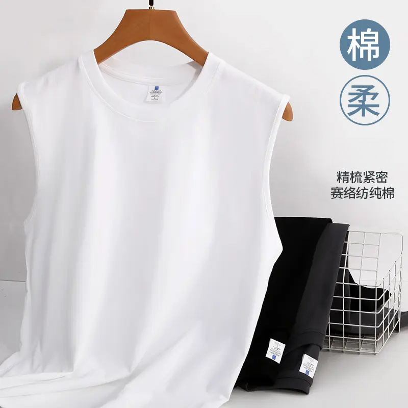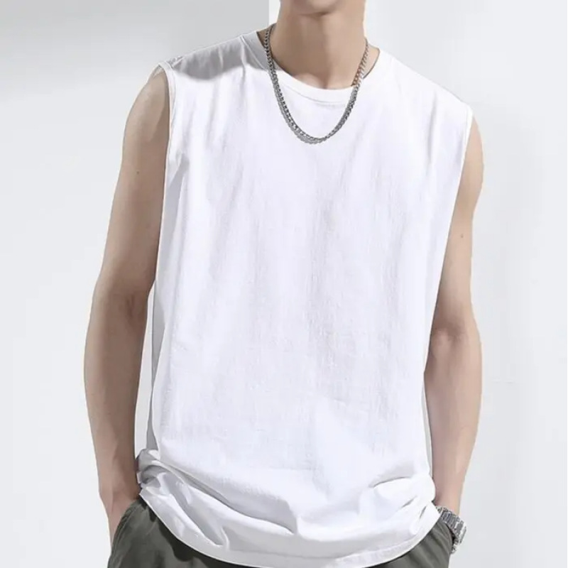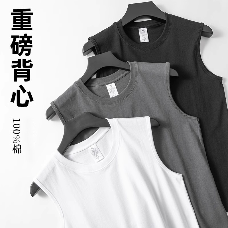 230g純綿ベスト男性スポーツカジュアル純色の丸首フィットネスinsファッション香港風外着速乾