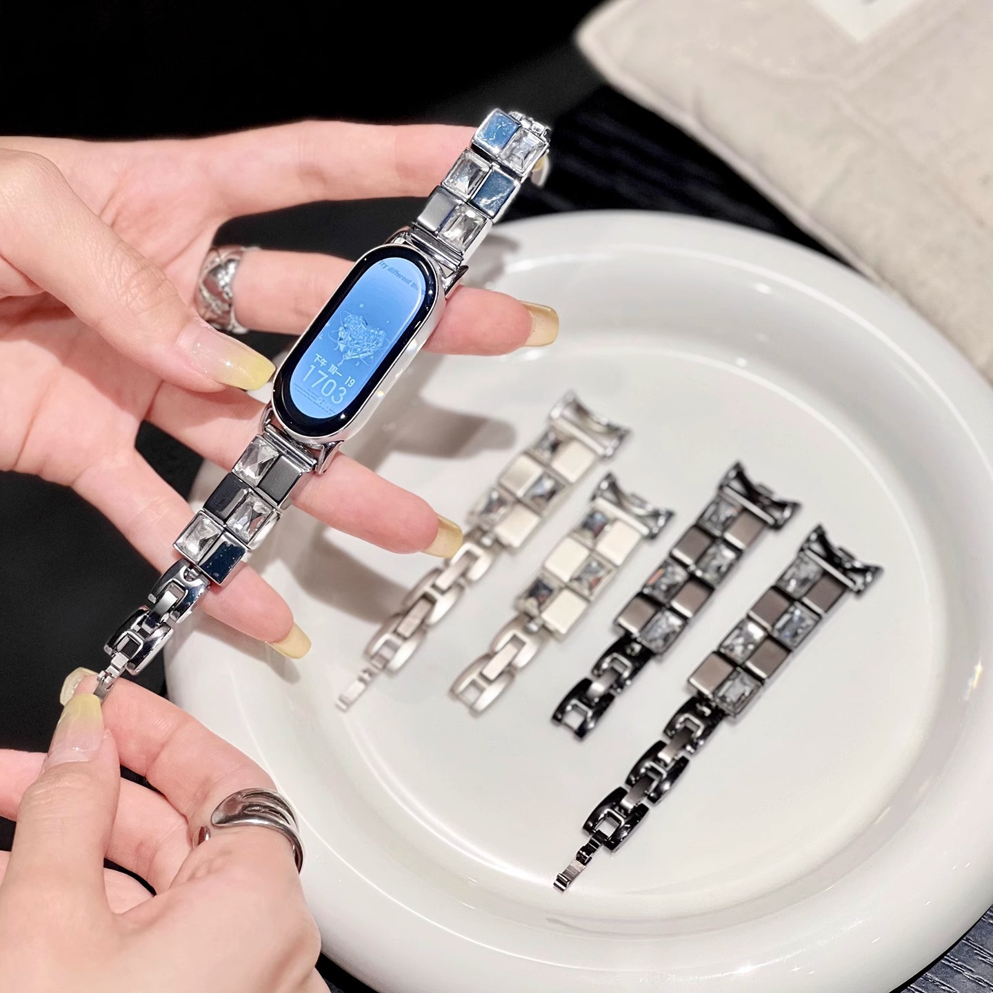 Xiaomi Mi Band 10 ストラップセラミックバージョンアイスキューブジルコンチェーン 8/7 ストラップ Xiaomi 9NFC メタルストラップに適しています。