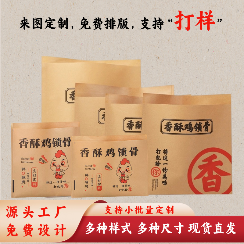 クリスピーチキン鎖骨耐油紙袋フライドチキンウィッシュボーンコーティング紙袋フライドチキンレッグチキンナゲット手羽先クラフト紙袋カスタマイズ