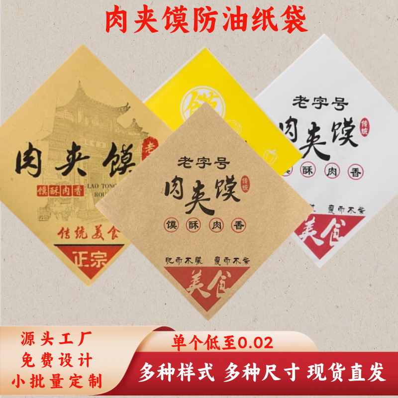 Laotongguan Roujiamo 耐油紙袋ダブルオープン野菜パンケーキ三角袋生肉ケーキクラフト紙包装袋カスタマイズ