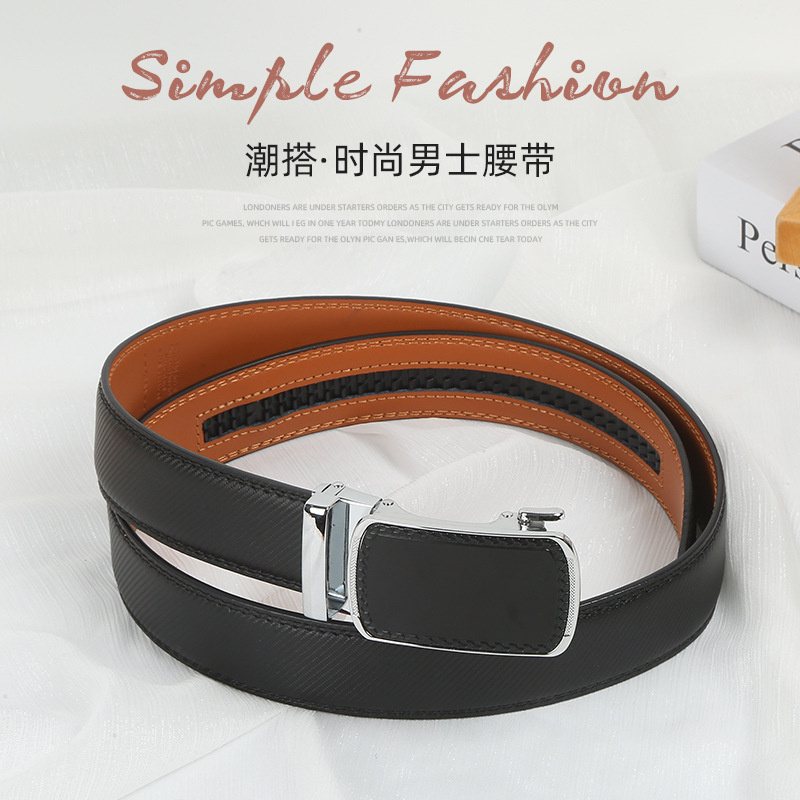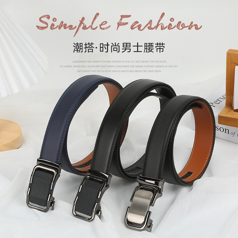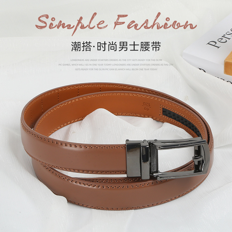高級感のあるメンズベルト卸売 自動バックル付き革ベルト 男性用純牛革 シンプルカジュアルビジネスメンズベルト