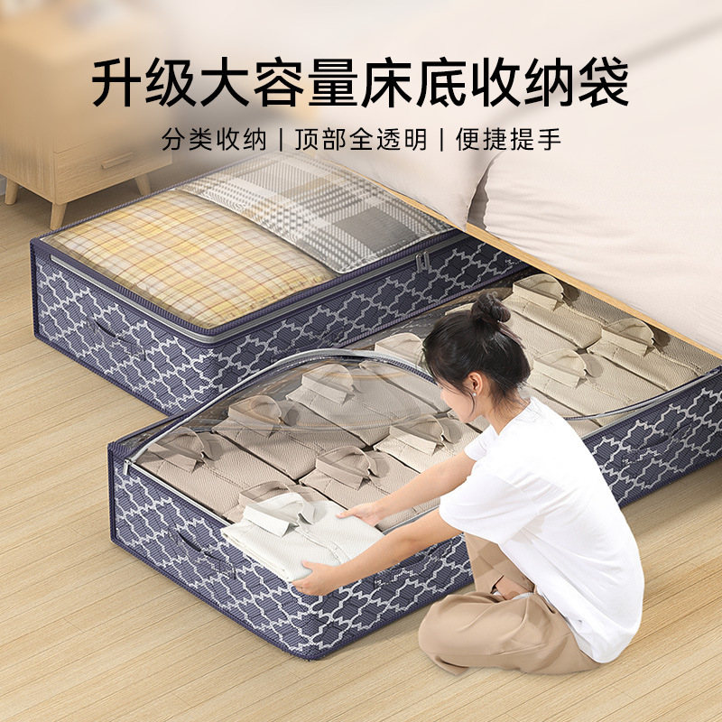 クロスボーダーベッドボトム収納袋大容量透明衣類収納バッグ折りたたみ収納ボックス不織布衣類収納袋