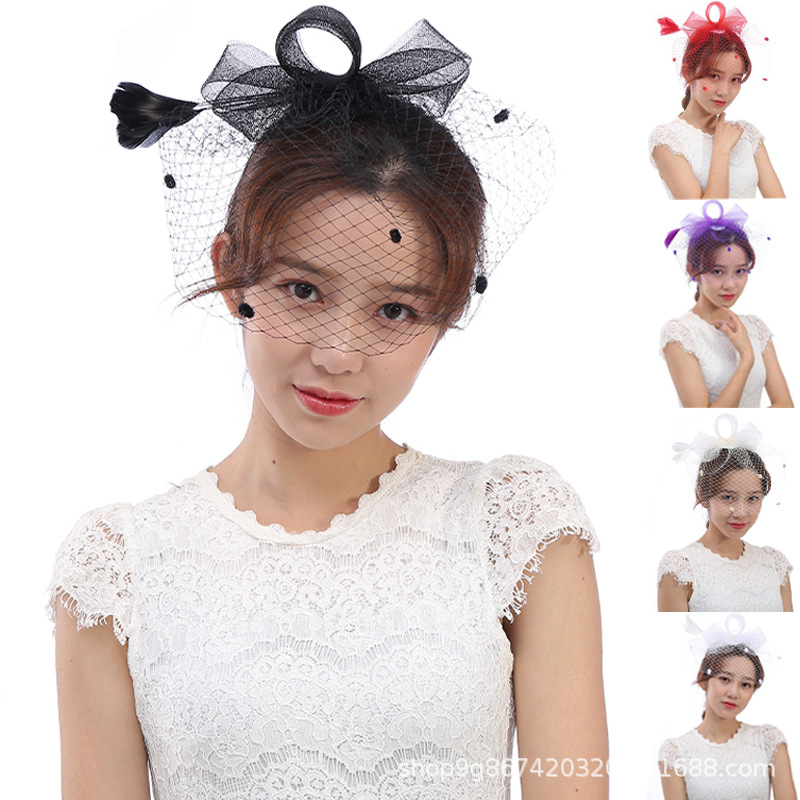 欧米の羽の新婦の髪飾りの網糸の斑点のドレスのアクセサリーの頭飾りの手袋の真珠のネックレスの組み合わせのスーツ