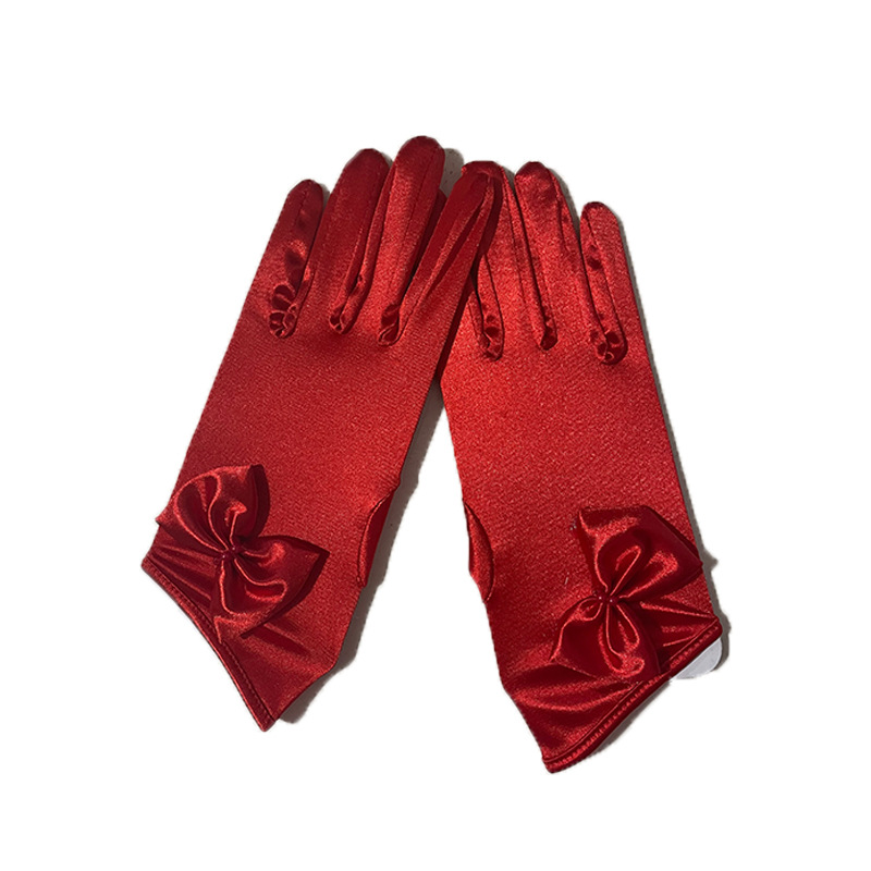新作結婚式弾力色丁蝶々節ウェディング手袋絹織物生地礼儀衣装演出白手袋