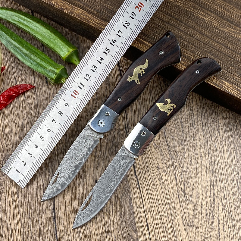 ダマスカス折り畳みナイフ高級ポケット折り畳みナイフ鋭利高硬度ナイフ桜折り畳みナイフメーカー卸売り