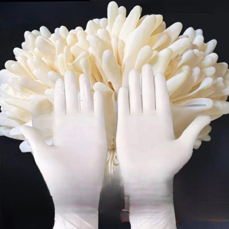 ゴム手袋は使い捨て食品ラテックスゴムを厚くして飲食店の台所で食器を洗う医師の手術家庭用女性を食べる