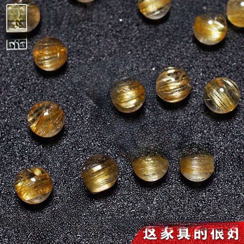 天然ブラジル 7A ゴールデンヘアクリスタルルースビーズ diy 手作りブレスレット滑らかなヘアチタンクリスタルシングルビーズマルチ宝半完成アクセサリー