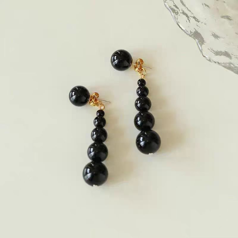 ヨーロッパとアメリカのファッショナブルなデザインのマルチブラックアゲートイヤリング、ライトラグジュアリー、ハイエンドイヤリング、ニッチファッショナブルイヤリング