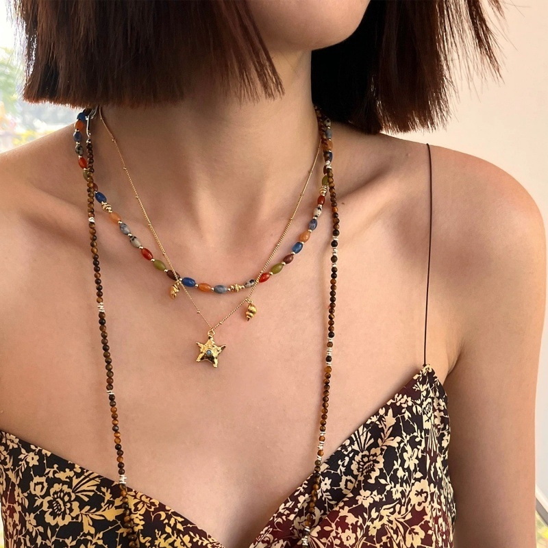 新しいオーシャンソングカラフルなビーズドーパミンヒトデペンダントネックレスニッチホリデースタイルスタッキング鎖骨チェーン女性用